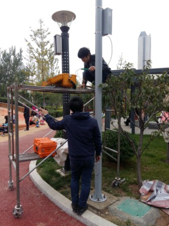 龙潭公园占地约40公顷,南北1000多米,东西约600米,此次工程敷设光缆6KM,立杆50根,监控点位共计96个。主要分布于主干道、中心广场、儿童活动区、北湖大半岛、办公楼等区域。